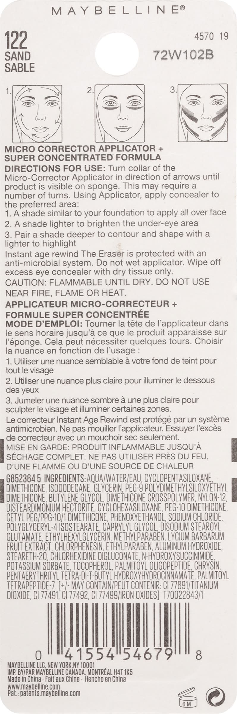 Concealer, Multi-Use, Eraser, Medium/Full, Sand 122 MAYBELLINE NEW YORK, New York, NY 10001