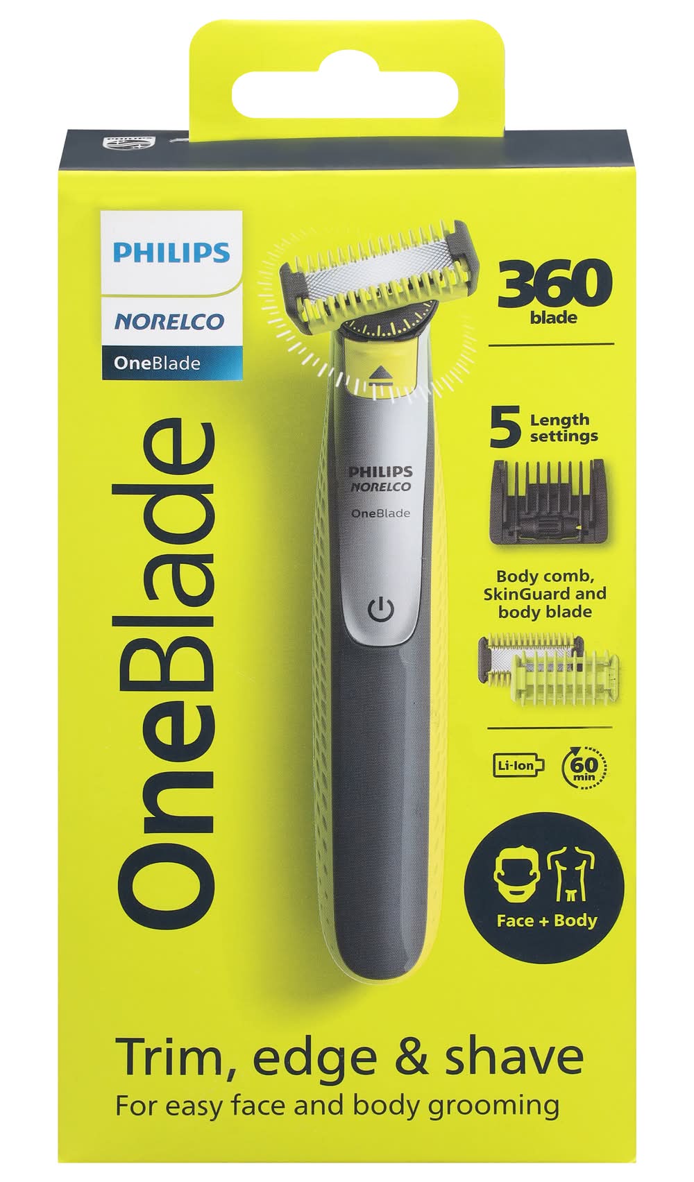 Norelco One Blade Face & Body Trimmer 360 Blade, Black-White