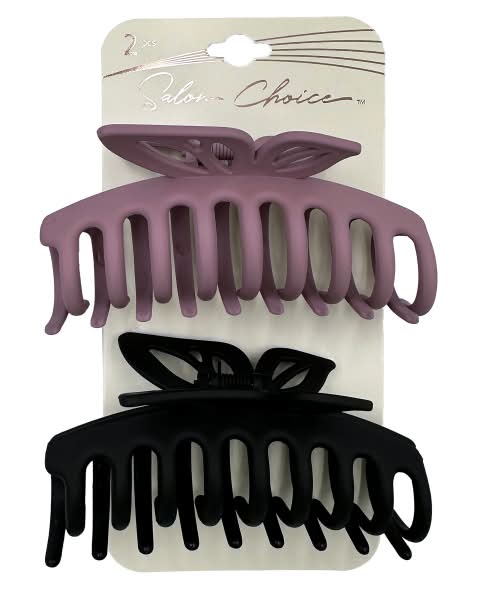 2 count large butterfly claw clips with soft touch coat and matte finish can be fun when used for pulling hair into a stylish twist or ponytail. Good for gathering hair into a bun. Show your creative side when wearing these fancy clips. • Color: Black-brown • Size: Large