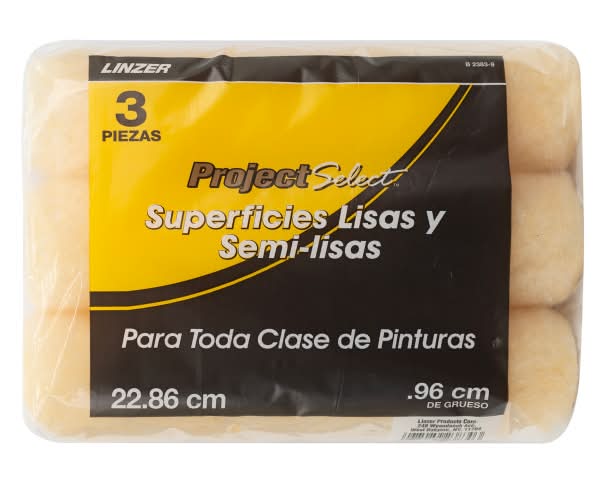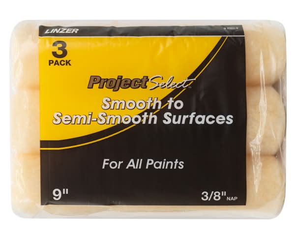 Linzer 9 Inch X 3/8 Inch Economy Roller Cover 3 packs are crafted from polyester knit fabric, designed for applying all paints with flat sheens. These roller covers are suitable for smooth to semi-smooth surfaces and can be utilized for both interior and exterior projects. Characterized by medium density, they represent an economical choice for utility paint projects.