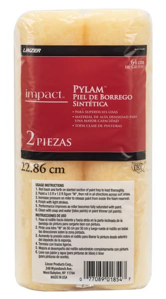Linzer Impact Pylam Paint Roller Cover Synthetic Lambskin, 9x1/4inch (2 ct)