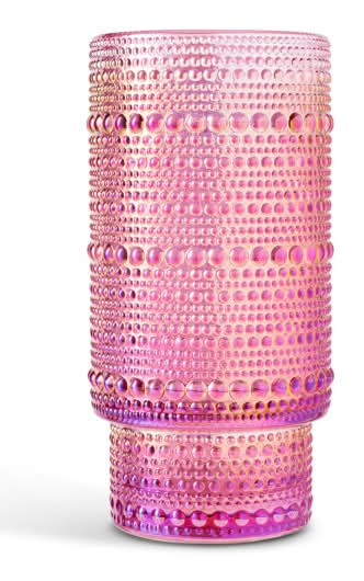 16oz beaded colored glass tumbler adds a fashion touch to your table. Color: Pink