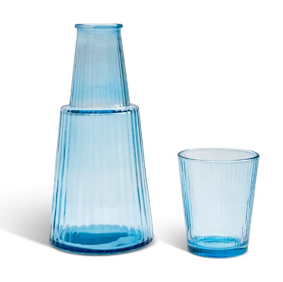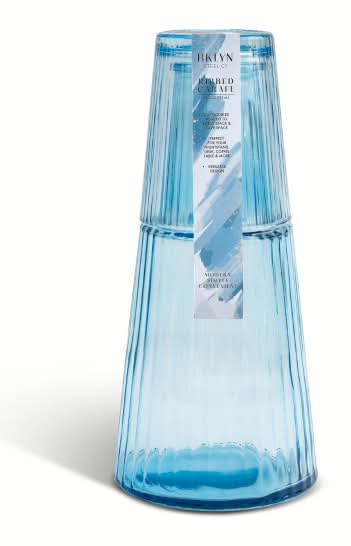 Bklyn Steel Ribbed Carafe Glass Denim 26.3Oz