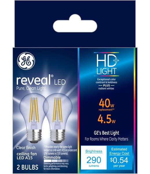 Reveal Hd Led 40w A15 Clear Ceiling Fan Dimmable Light Bulb 2-pack