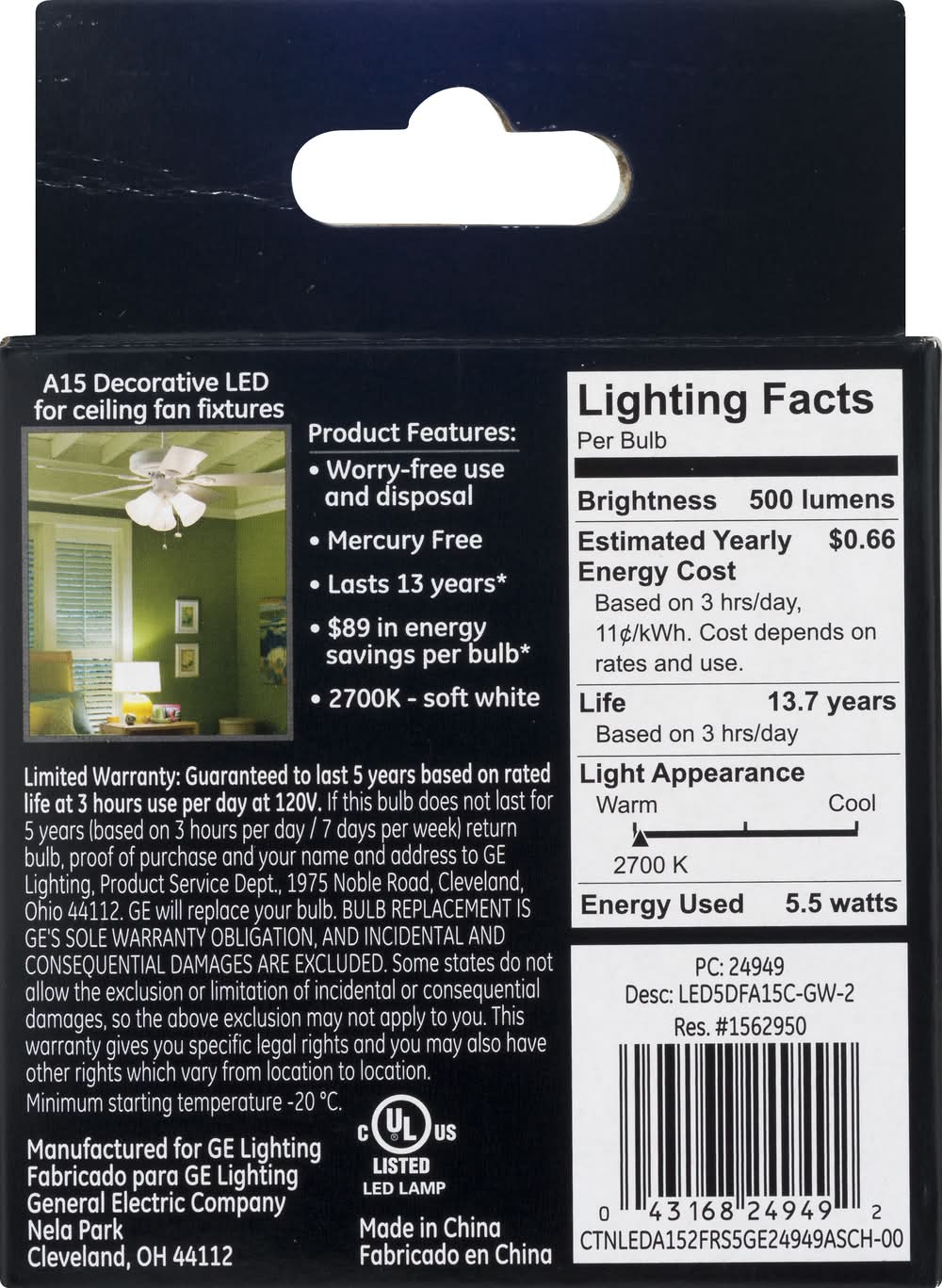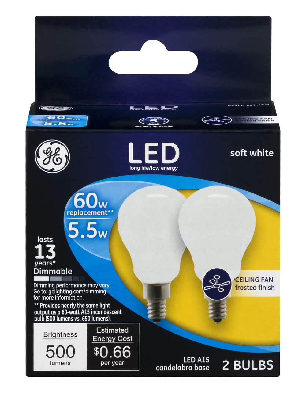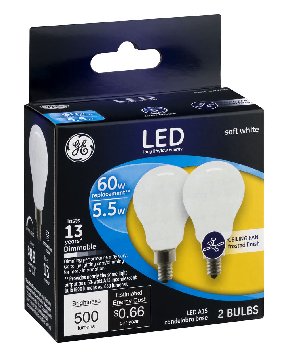 Light Bulbs, LED, Ceiling Fan, Soft White, 5.5 Watts