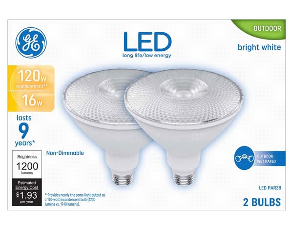 GE Lighting 120W Basic Par38 Led Outdoor Floodlight Bulbs, White (2 ct)