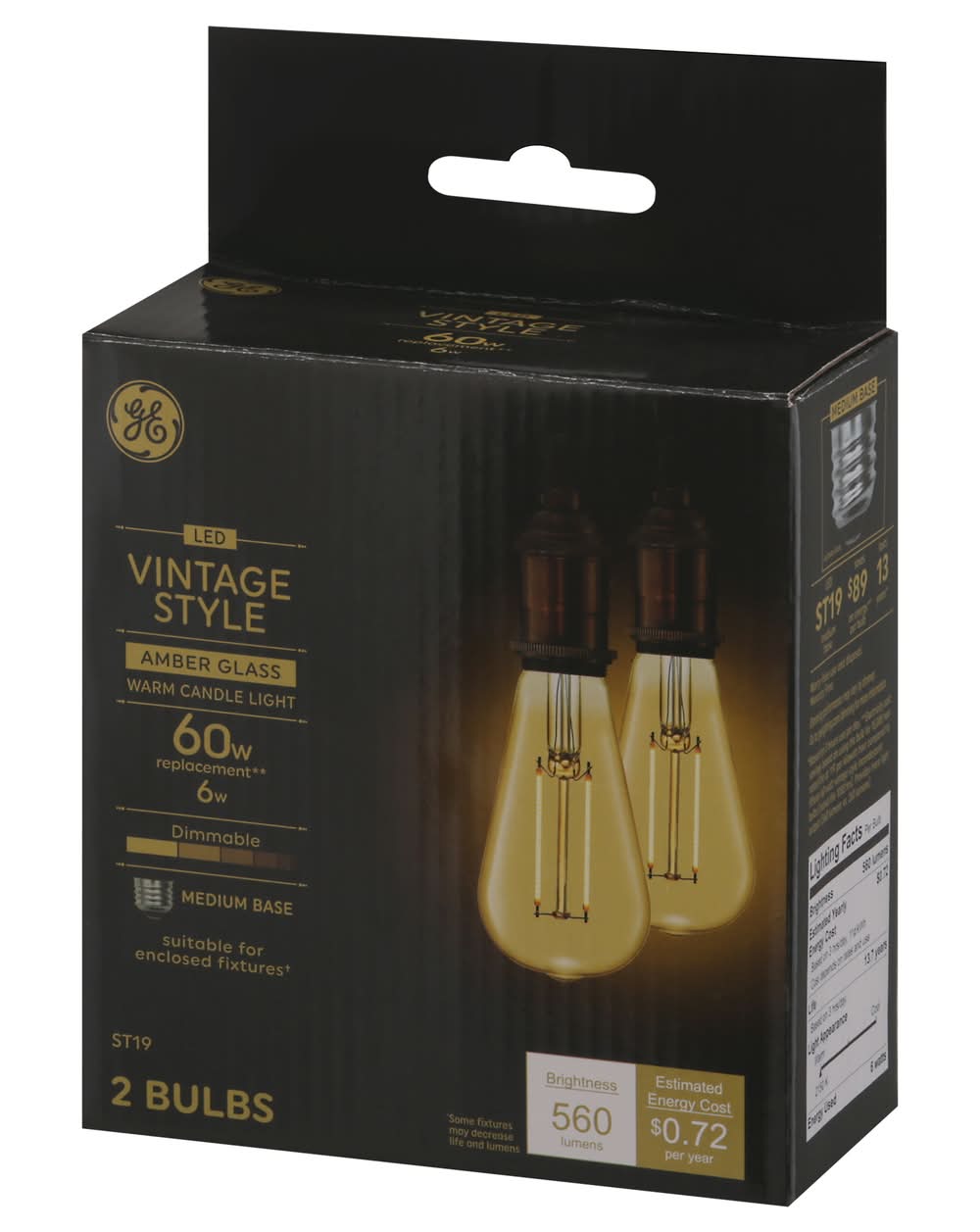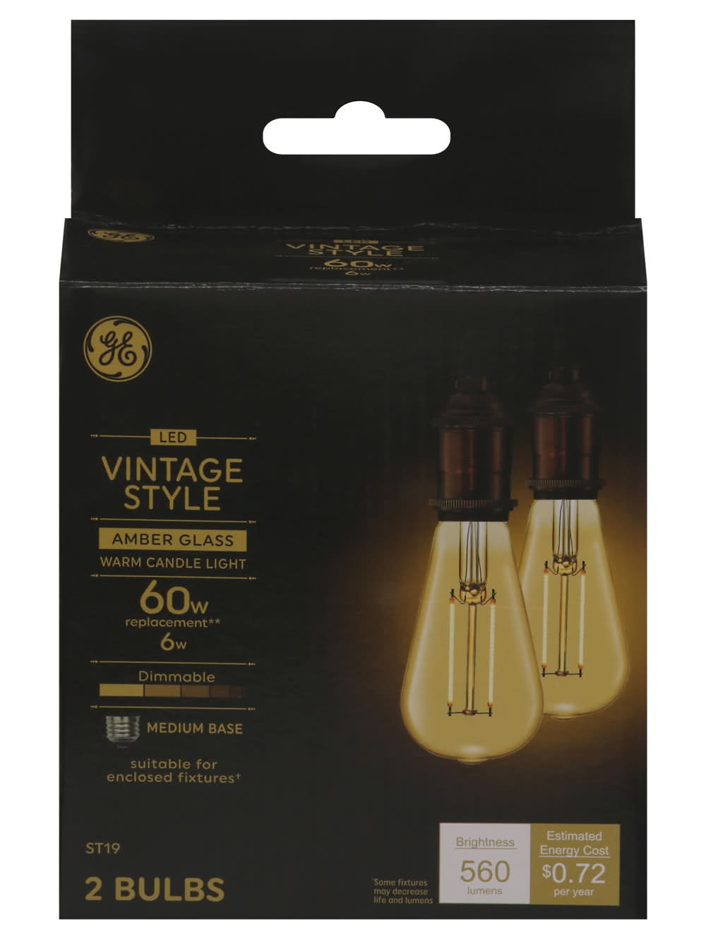 General Electric 60W Vintage Style Amber Glass Led Light Bulb (2 ct)