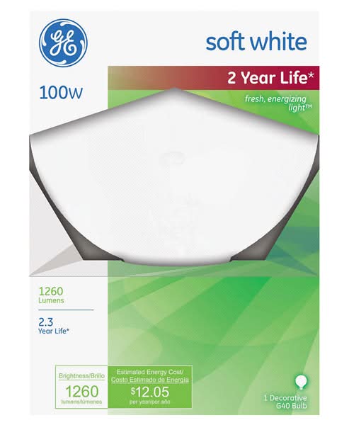 GE Lighting 100W G40 Globe Soft White Nondimmable Light Bulb