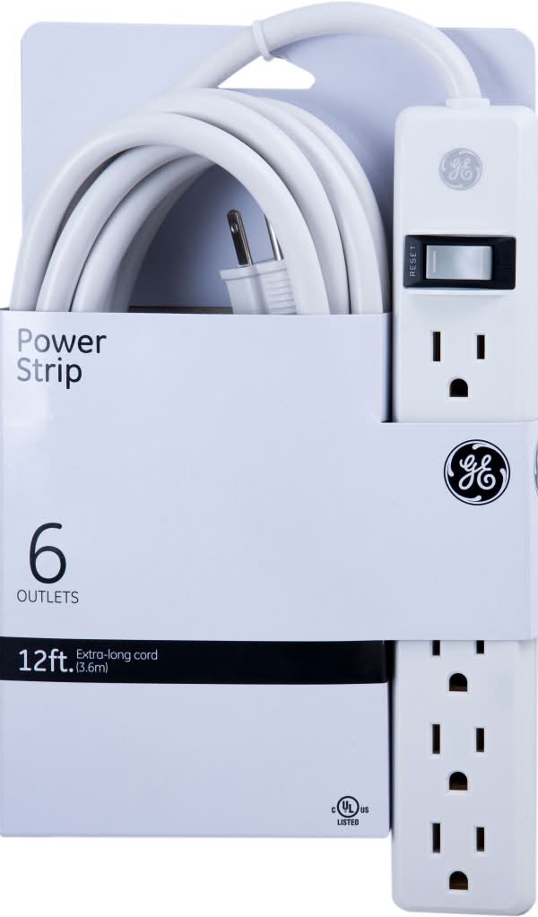 General Electric 6 Outlet 12ft Cord Extra Long Power Strip, White