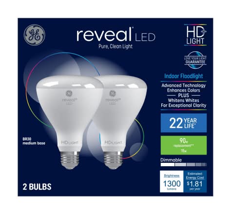 GE REVEAL HD LED 90W BR30 DIM 2PK