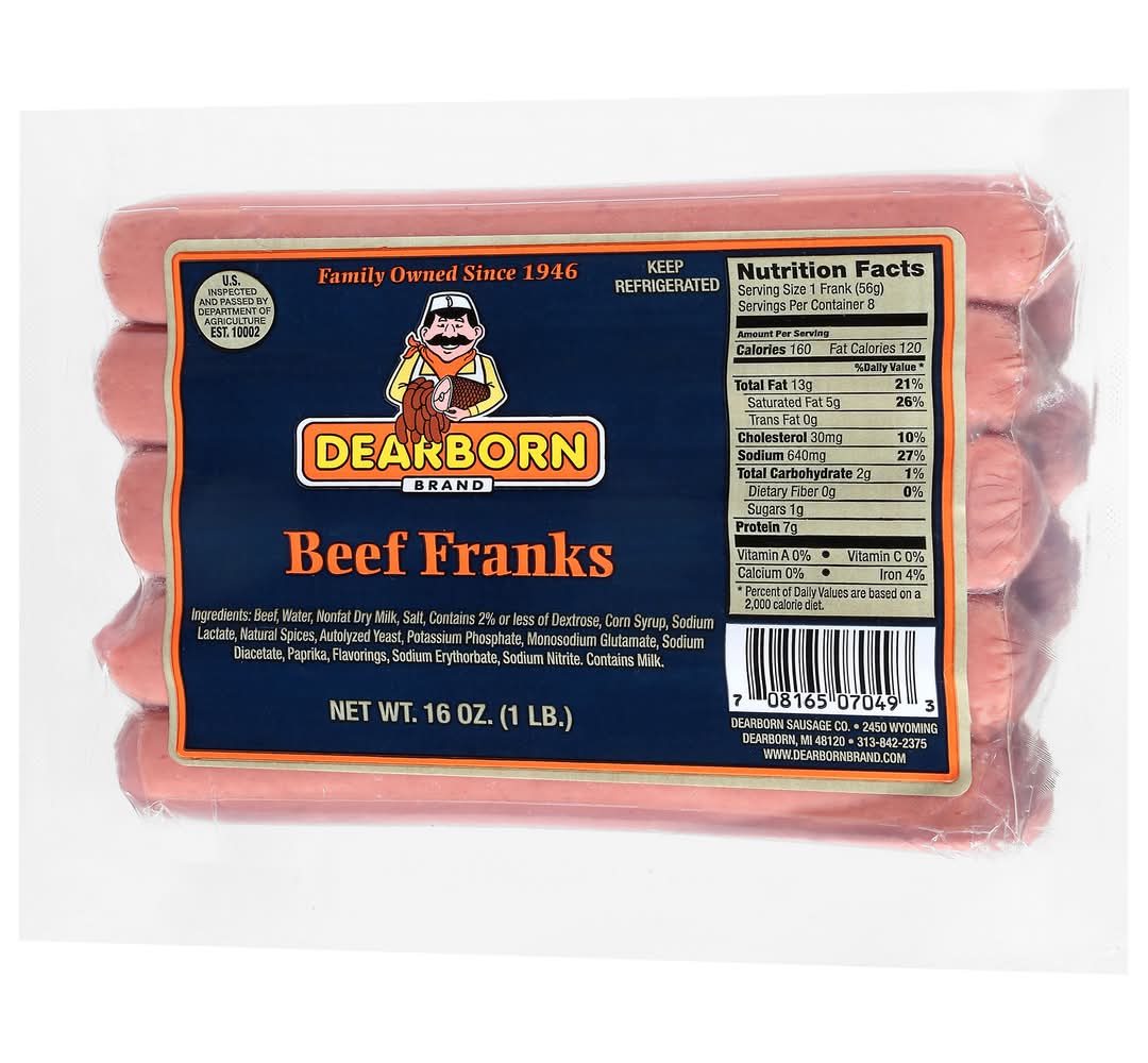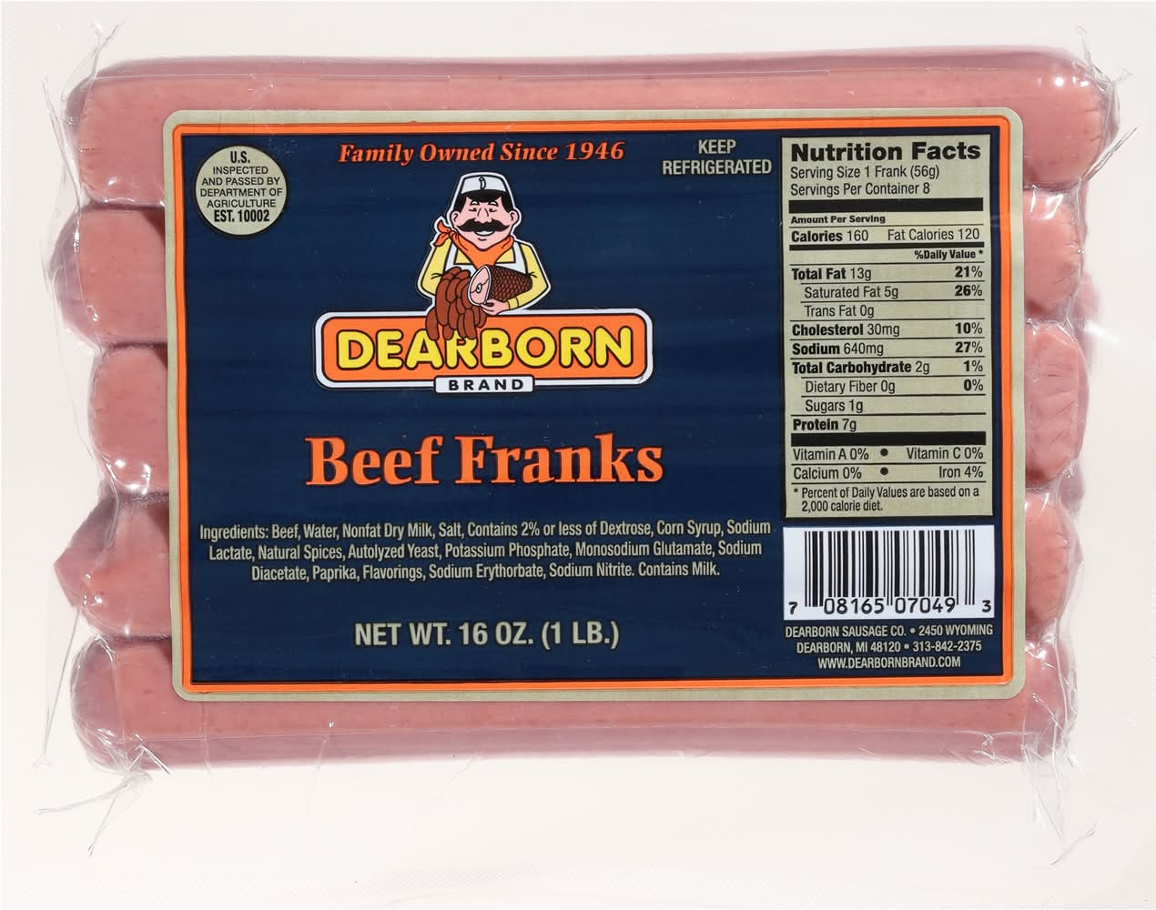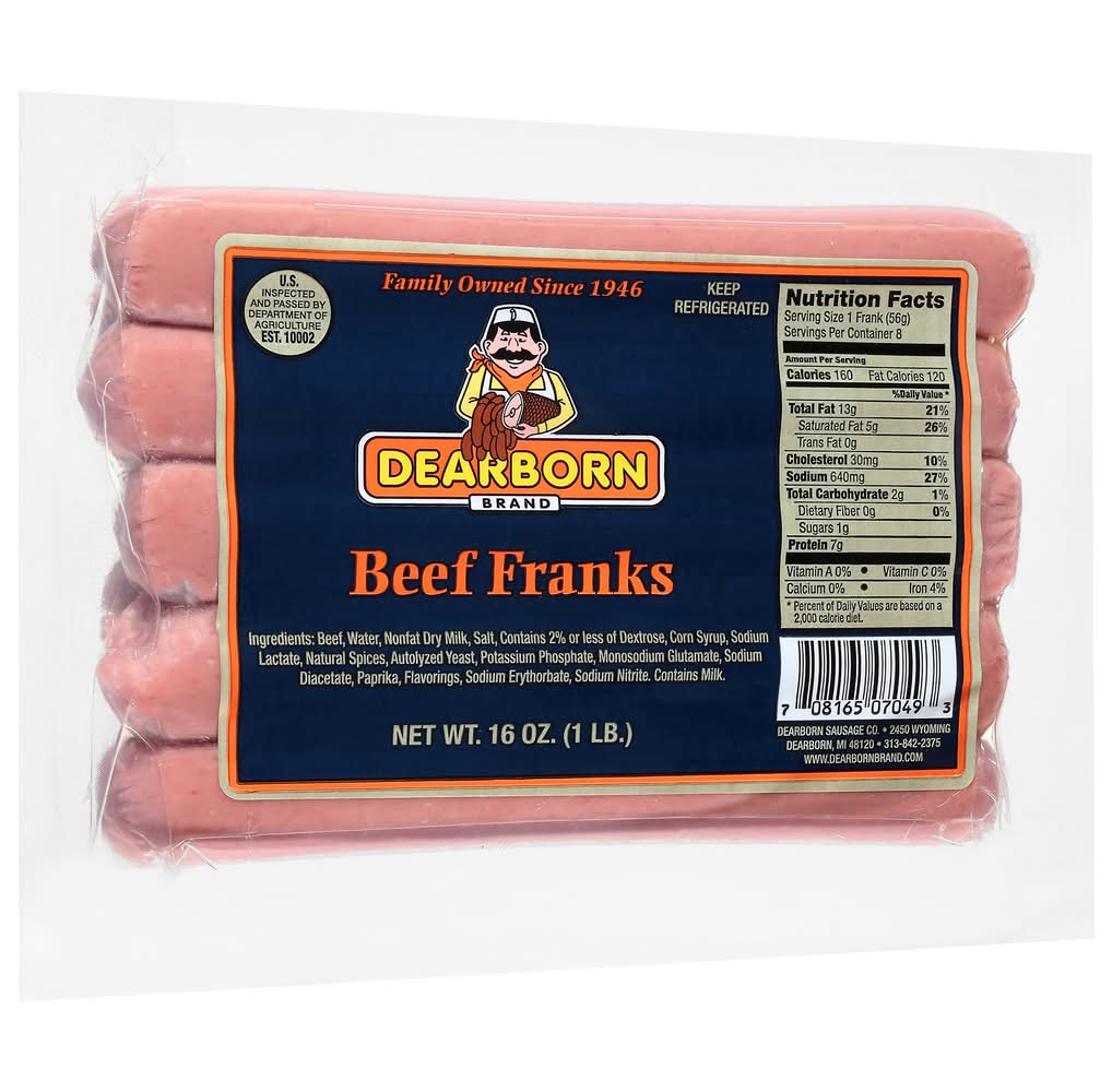 Dearborn Brand Beef Franks Hot Dogs (16 oz)
