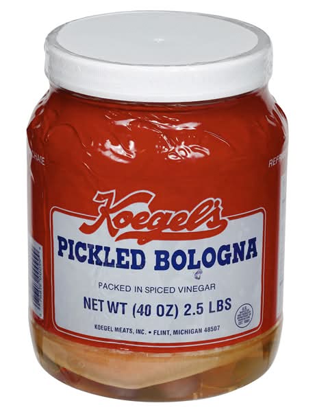 Koegel's Pickled Bologna is a savory, cured meat product preserved in a tangy pickling brine. This snack offers a unique taste experience combining the flavors of seasoned bologna with the zest of pickling spices. It is often enjoyed sliced and served as part of an appetizer tray or as a flavorful addition to sandwiches.