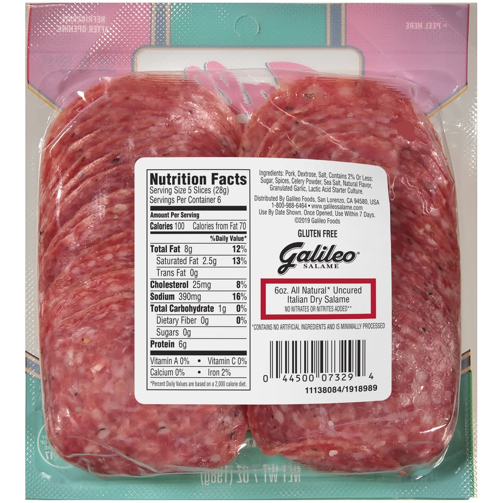 All Natural Uncured Salame Italian Dry Number of servings: 6