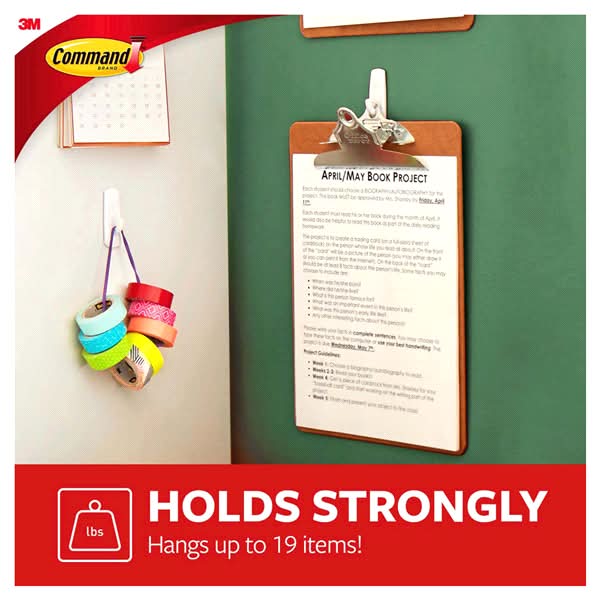 Command General Purpose Variety Kit comprises Utility Hooks, Wire Hooks, and Picture Hanging Strips, suitable for a wide range of decorating and organizing needs. It adheres to various smooth, finished surfaces such as painted walls, finished wood, laminate, glass, metal, and tiles. The product is designed for strong holding and clean removal, leaving no holes, marks, or sticky residue. It is particularly useful in spaces like dorm rooms, apartments, and personal working areas, where minimal surface damage is desired. No tools are required for installation, and the kit comes with directions for both proper use and removal. Prior to mounting, cleaning the surface with rubbing alcohol is recommended to enhance adhesive bonding. The kit supports redecorating and moving by allowing for easy adjustments of the locations of hung items. It includes various sizes and types of hooks and strips, making it versatile for hanging decor and everyday accessories.