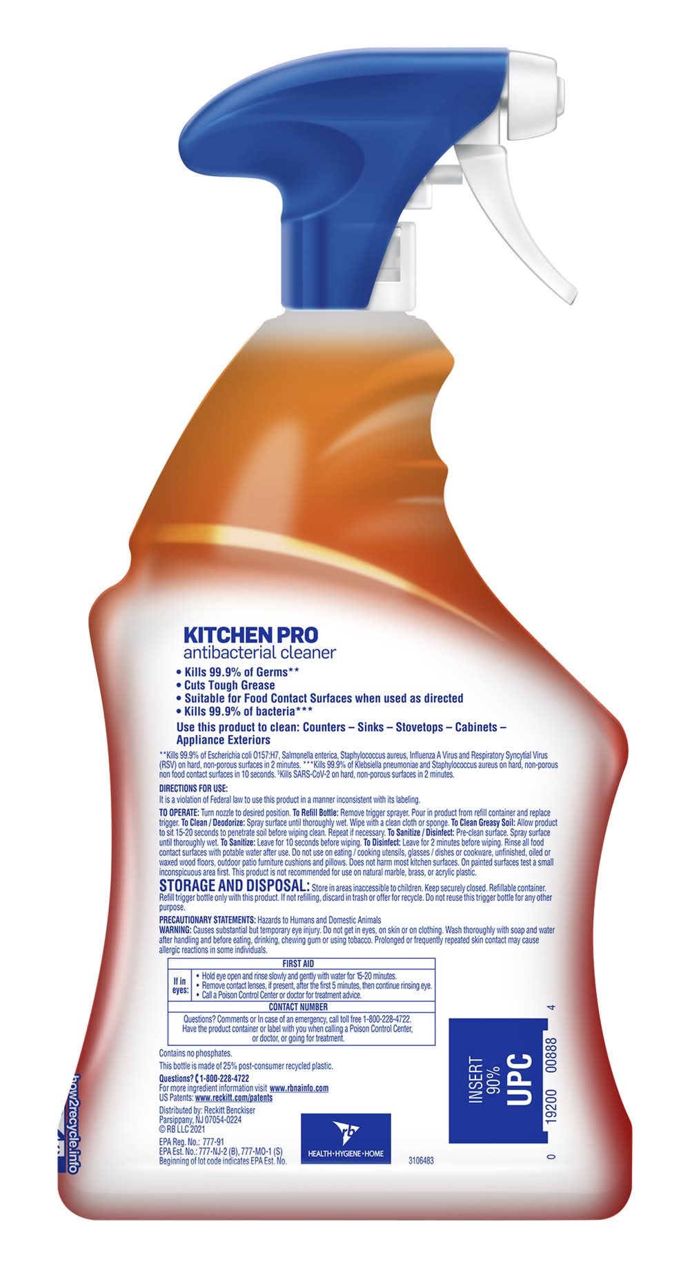 Lysol Pro Kitchen Spray Cleaner and Degreaser, Antibacterial All Purpose Cleaning Spray for Kitchens, Countertops, Ovens, and Appliances, Citrus Scent, 22oz Packaging: Reusable