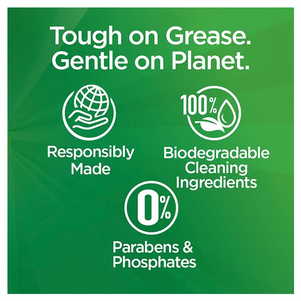 The OG: Original Green Palmolive. Palmolive Ultra Concentrated Strength Liquid Dish Soap is the original grease fighter youve known and trusted for over 50 years. Our signature green formula instantly cuts through grease, and works in 10 different ways to fight grease in your kitchen and beyond. Its versatile: tackling the toughest messes in your home, from pots, pans, and BBQ grills to tires and laundry. Its powerful: even stuck-on food doesnt stand a chance against our signature formula. And while its tough on grease, Palmolive Ultra is also gentle on the planet, with 100% biodegradable cleaning ingredients, 0% parabens and phosphates, and a 100% post-consumer recycled bottle*. Experience the difference our signature formula can make: today, tomorrow, and for the next 50 years. OECD 301 B, C, D / OCDE 301 B, C, D*46 oz and smaller size Today the dishes. Tomorrow the world. For over 50 years, households have relied on Palmolive for powerful grease cutting in the kitchen and beyond. And now, were thinking about what we can do for the next 50. Palmolive has always engineered our dishwashing liquid to be tough on grease yet soft on hands. Today, this extends to caring for the planet, too: Made in a TRUE Zero Waste Certified Manufacturing Facility*100% post-consumer recycled plastic bottles (for 46 oz and under)100% Biodegradable Cleaning Ingredients0% Parabens and Phosphates No matter which of our Palmolive Ultra Concentrated Dish Soaps you choose, you can rest assured youre taking a small step towards making a big difference. Palmolive: Tough on Grease, Gentle on Planet *TRUE is a zero waste certification program for businesses to assess performance in reducing waste. Learn more at true.gbci.org.OECD 301 B, C, D / OCDE 301 B, C, D