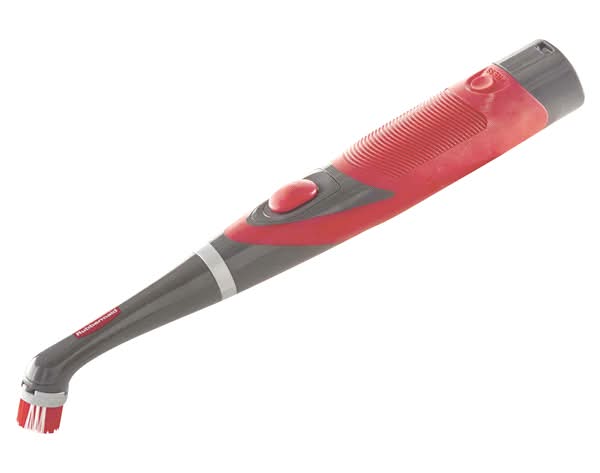 Designed for efficient cleaning in hard-to-reach areas, the Rubbermaid Power Scrubber Brush excels in scrubbing grout lines, corners, and other tight spaces. Suitable for use in both kitchen and bathroom environments, this tool operates at a high speed, enabling quicker cleaning compared to traditional manual methods. It comes equipped with a power scrubber base, an all-purpose cleaning head, and a specialized grout scrubbing head. The device is powered by AA batteries. Color: Red
