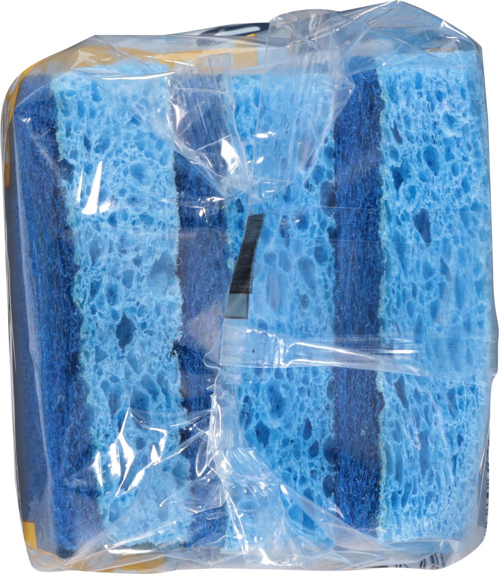 Scrubber Sponges are designed for cleaning without causing scratches on surfaces. Each pack contains three sponges that can be used on a variety of items including cookware, countertops, and other household surfaces. The sponges are intended to be durable and long-lasting for multiple uses. Size: 4.4x2.6x0.8 in