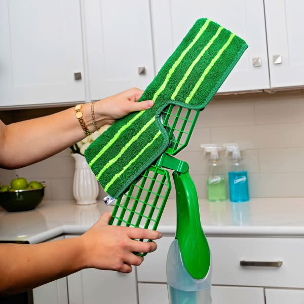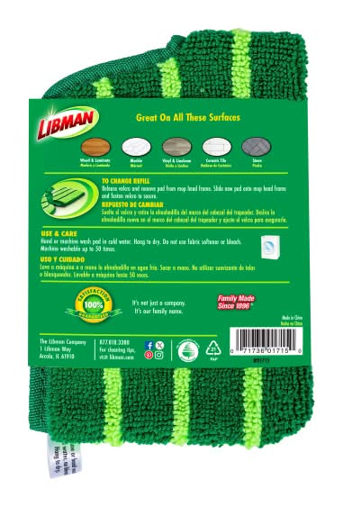 The thick, TripleGrip Microfiber pad deep cleans, as it lifts and locks dirt away. Remove the pad easily to machine wash and reuse for up to 50 times. Excellent for wood, laminate, tile, marble, linoleum, stone, and more. Removes over 99% of staphylococcus aureus and E. coli on ceramic tile and wood floors when used with water*