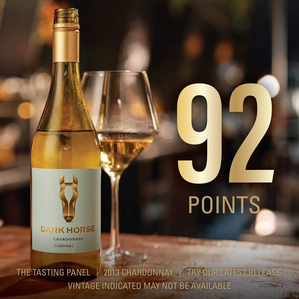 The original. Dark Horse Chardonnay showcases rich flavors of baked apple and pear, layered with toasted oak, notes of caramel and brown spice with a lingering, smooth finish. • Alcohol by volume: 13.5% • 2017 • Dark Horse Wines, Modesto, CA 95354 • Packaging: Reusable