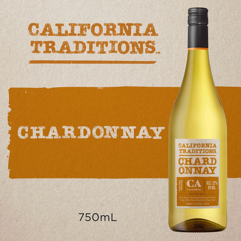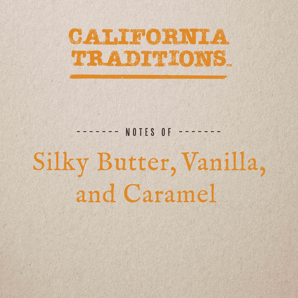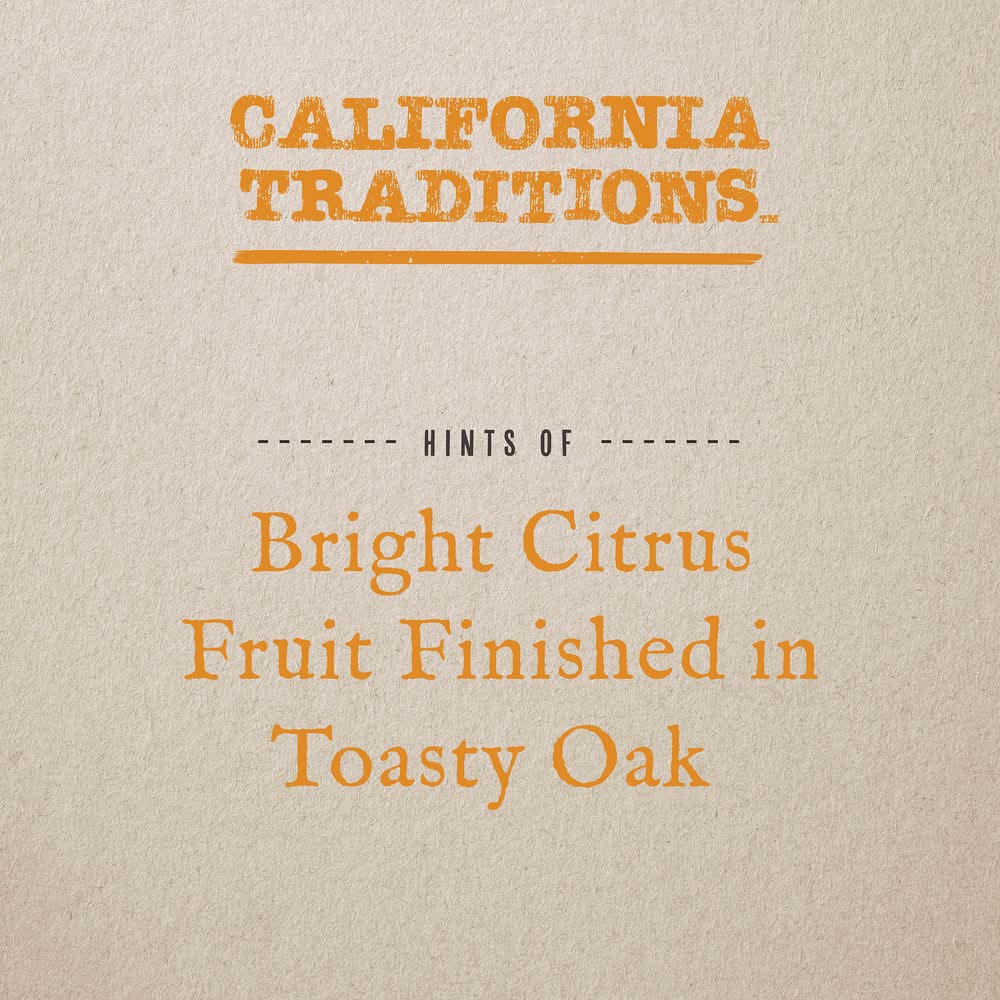 California Traditions Chardonnay is a medium-bodied California white wine with layers of bright citrus, silky butter, charming vanilla and caramel. Full-flavored and rich, this wine offers a brilliant finish with toasted oak aromas. Cheers to all who share in the heritage of California! Alcohol by volume: 12%