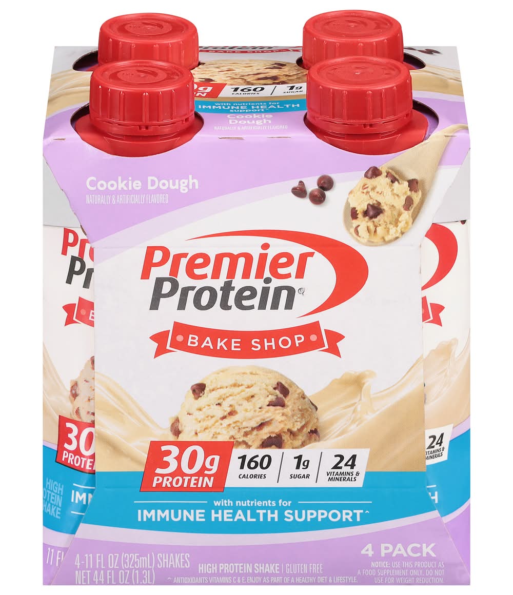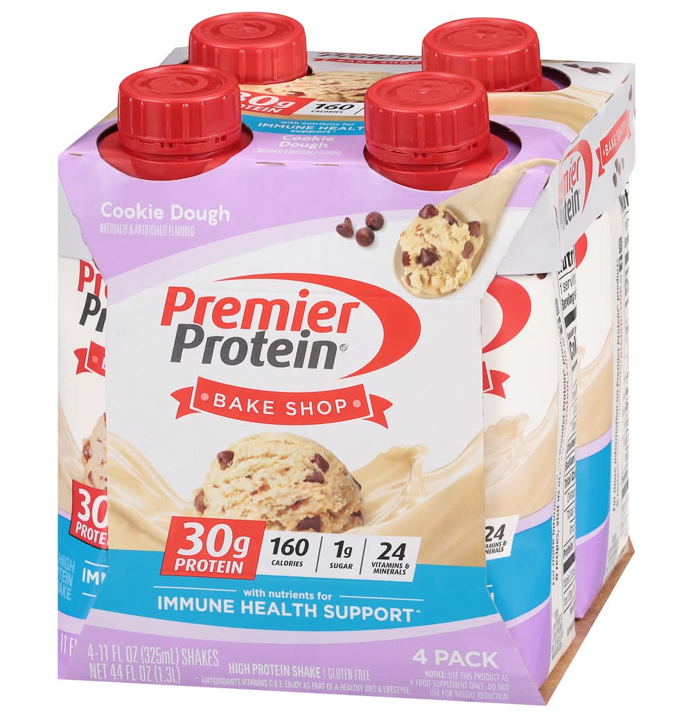 Premier Protein Shake Cookie Dough 4PK • Flavor: Cookie dough • Pack size: 4 • Packaging: Reusable
