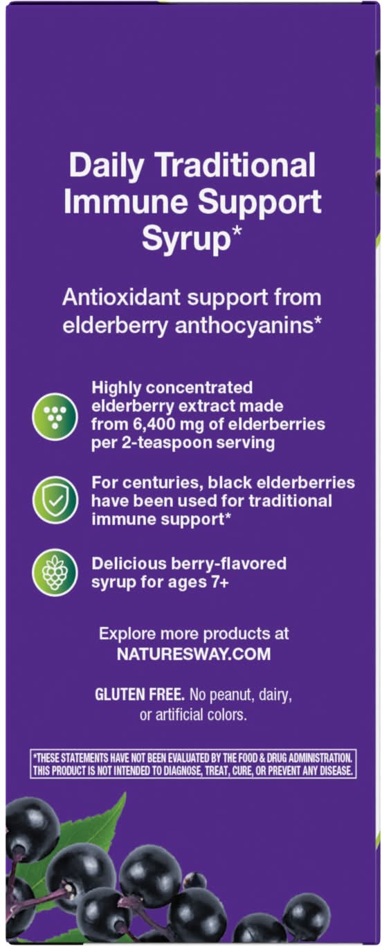 Delicious black elderberry syrup for traditional immune support.* Nature's Way Brands, LLC, Green Bay,WI,54311
