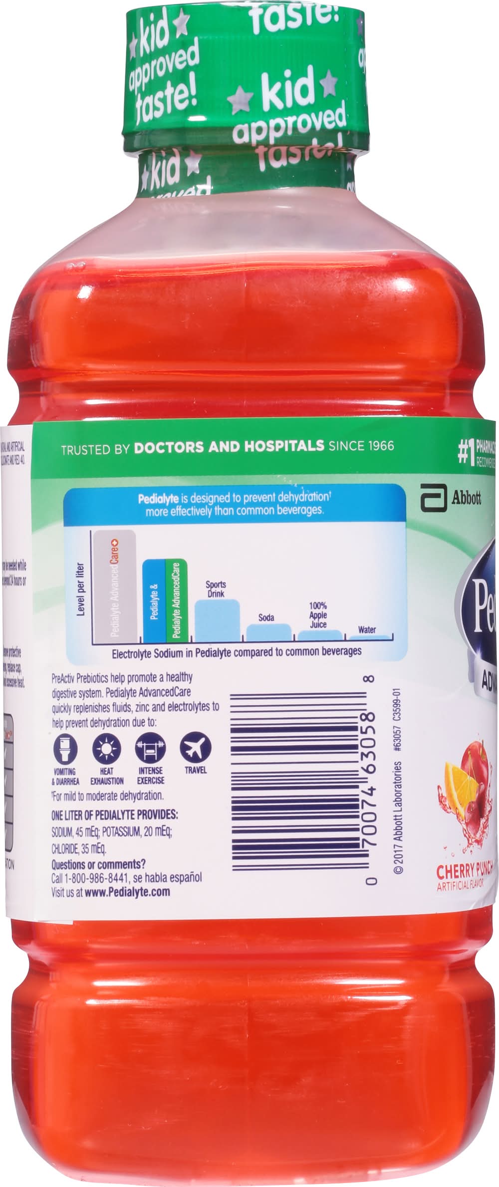 Pedialyte Advancedcare Preactiv Prebiotics Electrolyte Solution, Cherry Punch (1.1 qt)