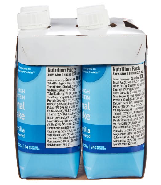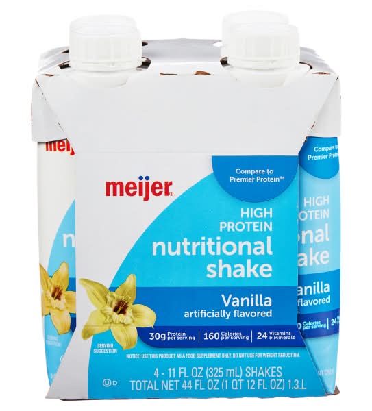 Meijer High Performance Protein Shake - Vanilla is a ready-to-drink protein shake that offers a smooth and creamy texture. It comes in a vanilla flavor and is suitable for various dietary needs, including on-the-go nutrition. This versatile shake can be enjoyed first thing in the morning, added to coffee, used as an afternoon snack, or consumed after a tough workout to support recovery and nourishment. • Flavor: Vanilla • Pack size: 4