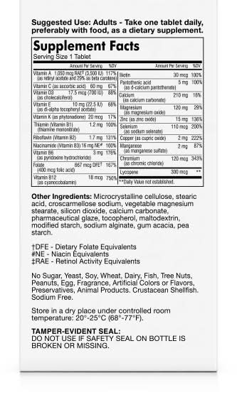 Our men's one daily is specifically formulated for their top health concerns. It contains key nutrients to support heart health, immune health and energy metabolism. They are coated and easy to swallow and are gluten free.