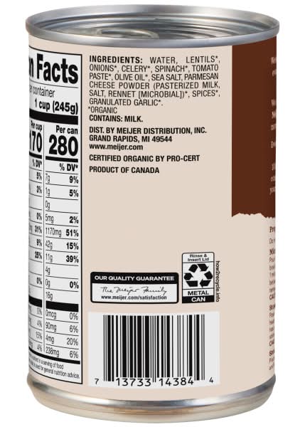 True Goodness Organic Mediterranean Lentil Soup is a delightful blend of lentils, onions, celery, spinach, and tomato paste, all seasoned with olive oil, sea salt, parmesan cheese powder, and spices. This gluten-free and vegetarian soup is certified organic, offering a rich, hearty taste that is sure to satisfy.