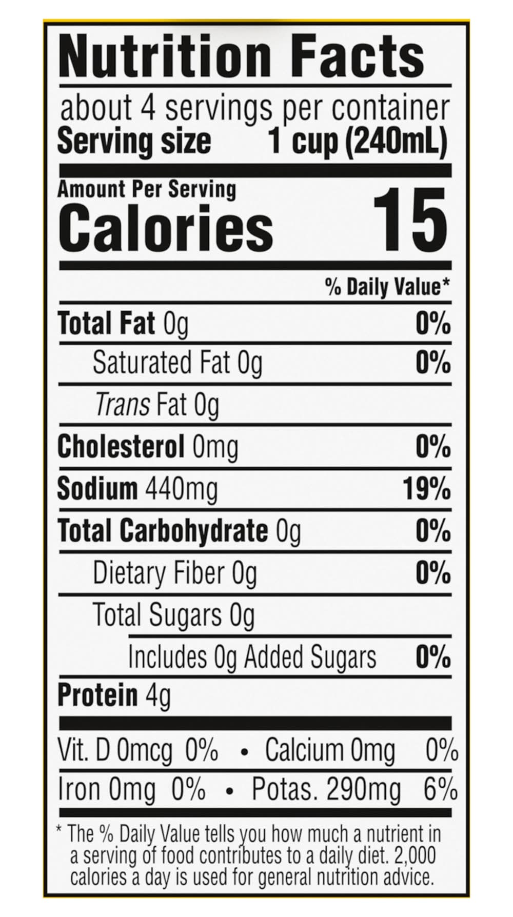 We craft our mouthwatering liquid gold by simmering McCormick Herbs and Spices with chicken and vegetable to extract layer of hearty flavor. • Flavor: Chicken • Mccormick & Co. Inc., Hunt Valley, MD • Packaging: Reusable
