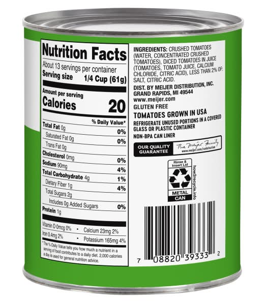 Meijer Low Sodium Crushed Tomato Puree is made without artificial flavors or preservatives, ensuring a taste that closely resembles fresh tomatoes. Its rich flavor and coarse, thick texture make it ideal for preparing Italian dishes, including homemade pizza and pasta sauces. This product is low in sodium.