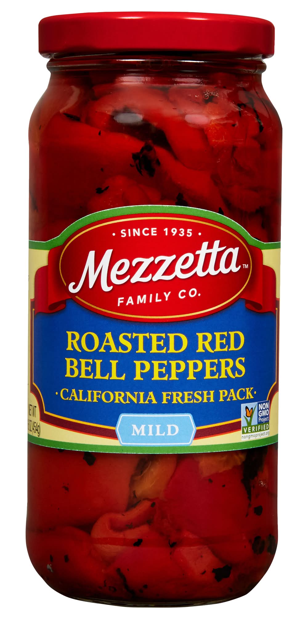 Certified gluten-free. Non GMO Project Verified. nongmoproject.org. Since 1935. Our peppers are fire roasted within 24 hours of picking to keep flavor and color vibrant. They're just like Nonna made at home. Fourth generation family company. - Jeff Mezzetta. Get inspired at Mezzetta.com. 100% recyclable. • Flavor: Mild • Gl Mezzetta Inc, American Canyon,Napa Valley,CA,94503,USA