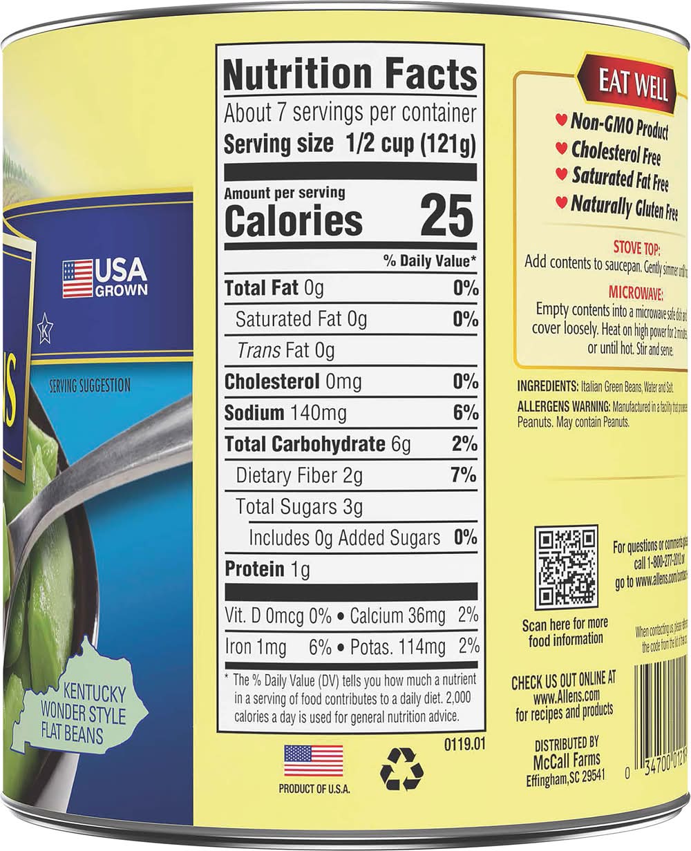 Ingredients: Italian Green Beans, Water and Salt Contains: Peanuts