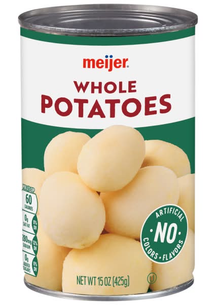 Meijer Whole Canned Potatoes offer a ready-to-use ingredient for a variety of recipes. Picked at their peak of ripeness, these potatoes are preserved in a can to maintain their fresh taste and texture.