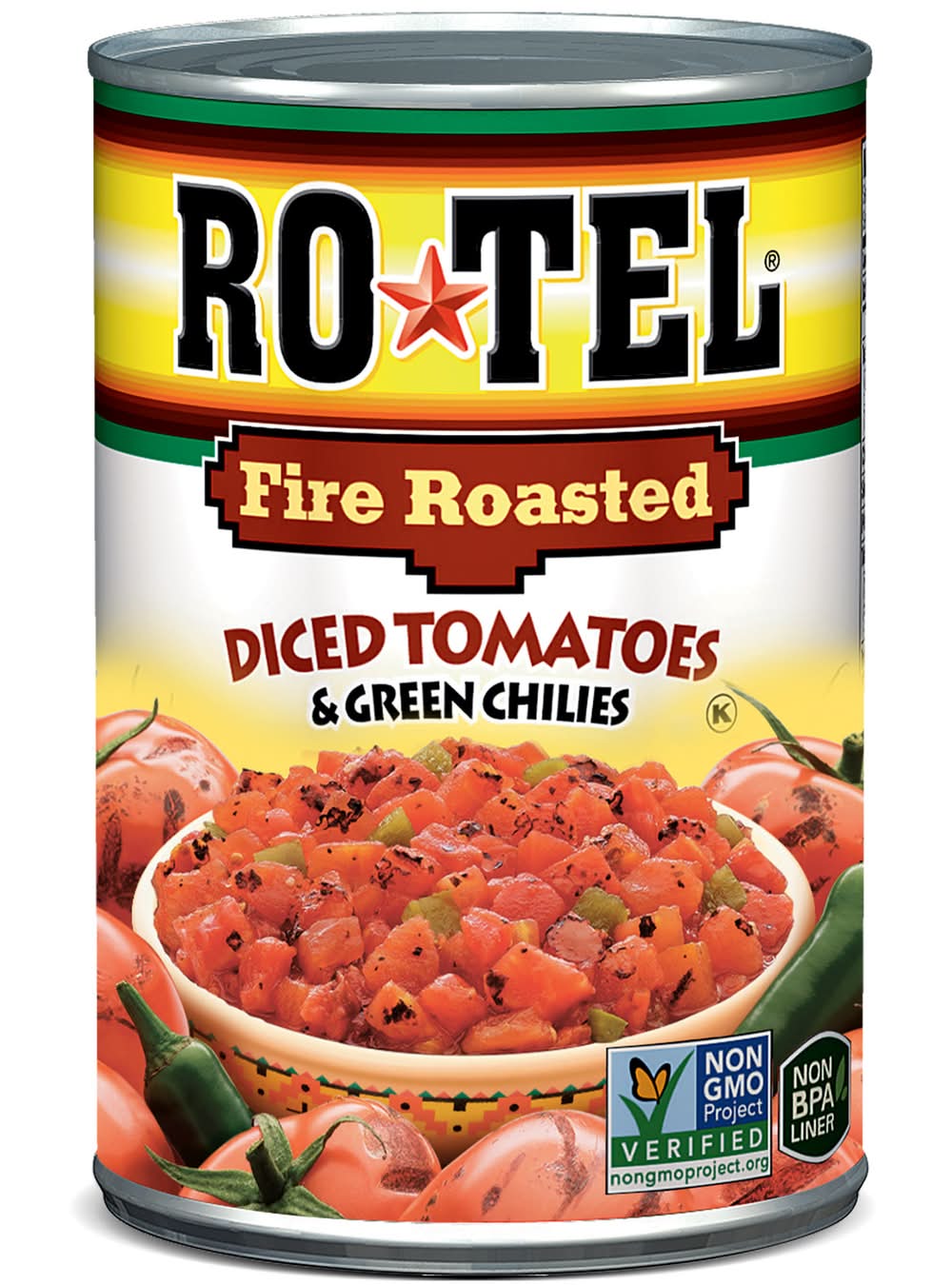 Add bold, spicy flavor to your dishes with Rotel Fire Roasted Diced Tomatoes and Green Chilies. Vine-ripened, fire roasted tomatoes and zesty diced green chilies combine for the perfect big, bold flavor boost for all your spicy recipes. From salsa and queso dip to savory chili and Mexican-inspired favorites, add these canned tomatoes to your creations for an extra kick. They are a tasty and easy way to spice up any meal or appetizer. A true pantry staple, these diced tomatoes are must-have canned vegetables. Ready when you need it, green chilies and juicy diced tomatoes canned to ensure bold flavor. These canned diced tomatoes and green chilies are Non-GMO Project Verified, packed in a non BPA lined can and contain 25 calories per serving, so you can add flavor without compromise. With a variety of heat levels and flavors you can find the canned tomato recipe that’s right for you. Rotel holds firmly to the belief that quality is paramount in making a great-tasting product. Rotel: Add some kick to your menu tonight. • Conagra Brands, PO Box 3534,Chicago,IL,60654 • Packaging: Reusable