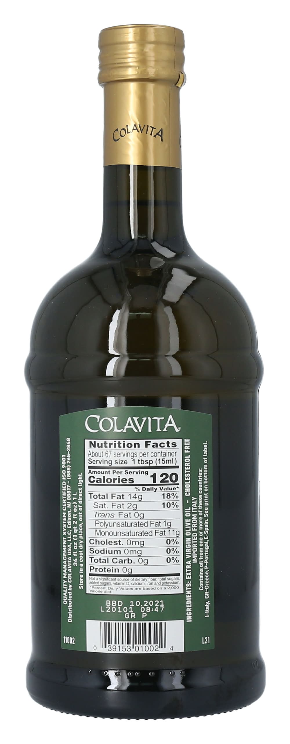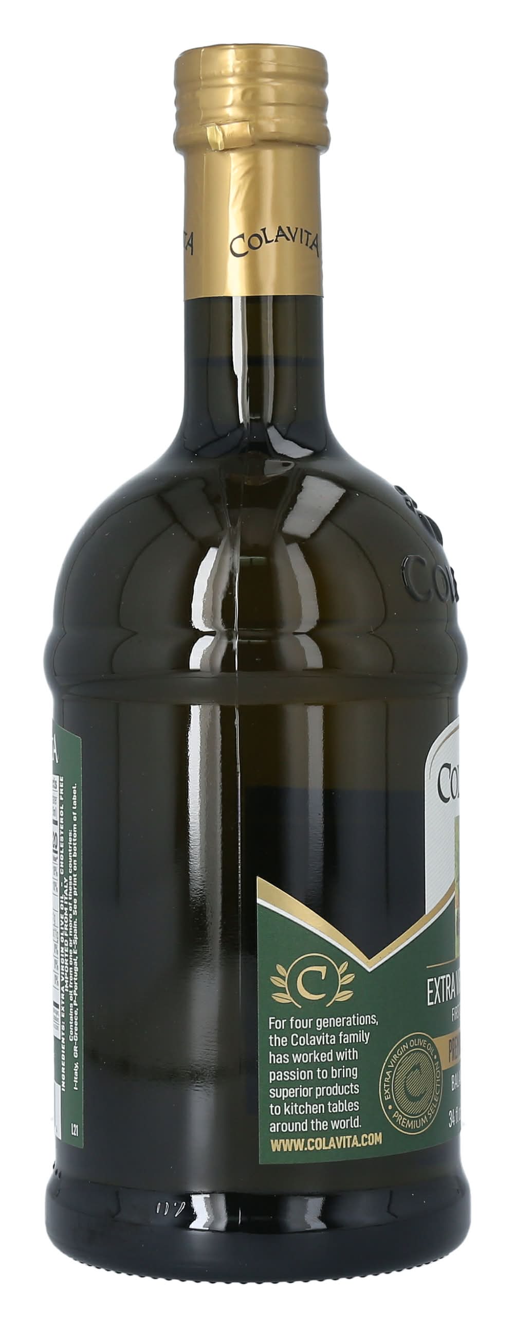 Colavita Extra Virgin Olive Oil is cholesterol-free and crafted through a first cold pressing technique. It offers a balanced flavor profile with notes of pepper and fruit, complemented by a mild finish. As a testament to its purity and quality, it is awarded the North American Olive Oil Association Quality Seal. The oil is imported from Italy and may contain oil from one or more of the following countries: Italy, Greece, Portugal, and Spain. It is a product that has been nurtured by the Colavita family over four generations, ensuring a consistent and superior quality. The quality management of this product is certified under ISO 9001 standards. Colavita USA, LLC, Edison, NJ, 08817