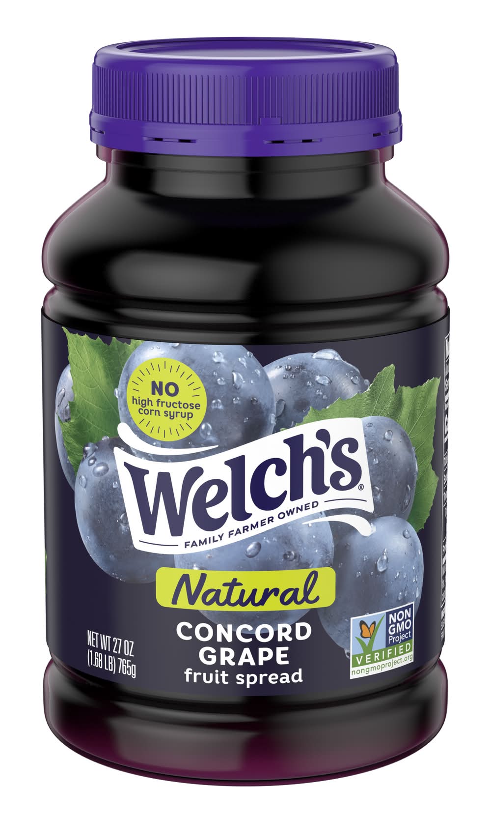 27OZ NATURALS SPREAD GRAPE • Flavor: Concord grape • Welch's, Concord, MA, 01742 • Packaging: Reusable