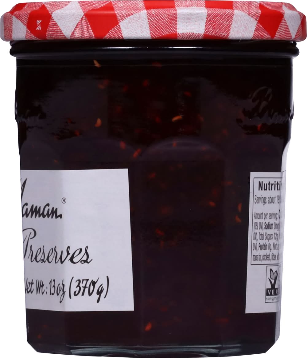 The all natural, real fruit Raspberry Preserves from Bonne Maman deliver quality every time. Bonne maman, Materne-Confilux S.A.,1 Allee Des Cerisiers B-5150,Floreffe,Belgium.