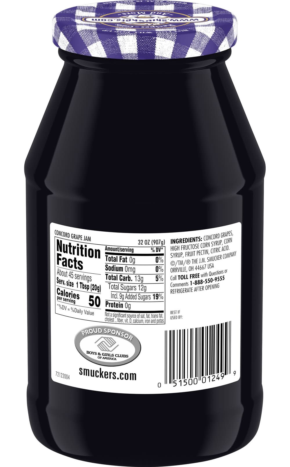 Ingredients: Concord Grapes, High Fructose Corn Syrup, Corn Syrup, Fruit Pectin, Citric Acid.