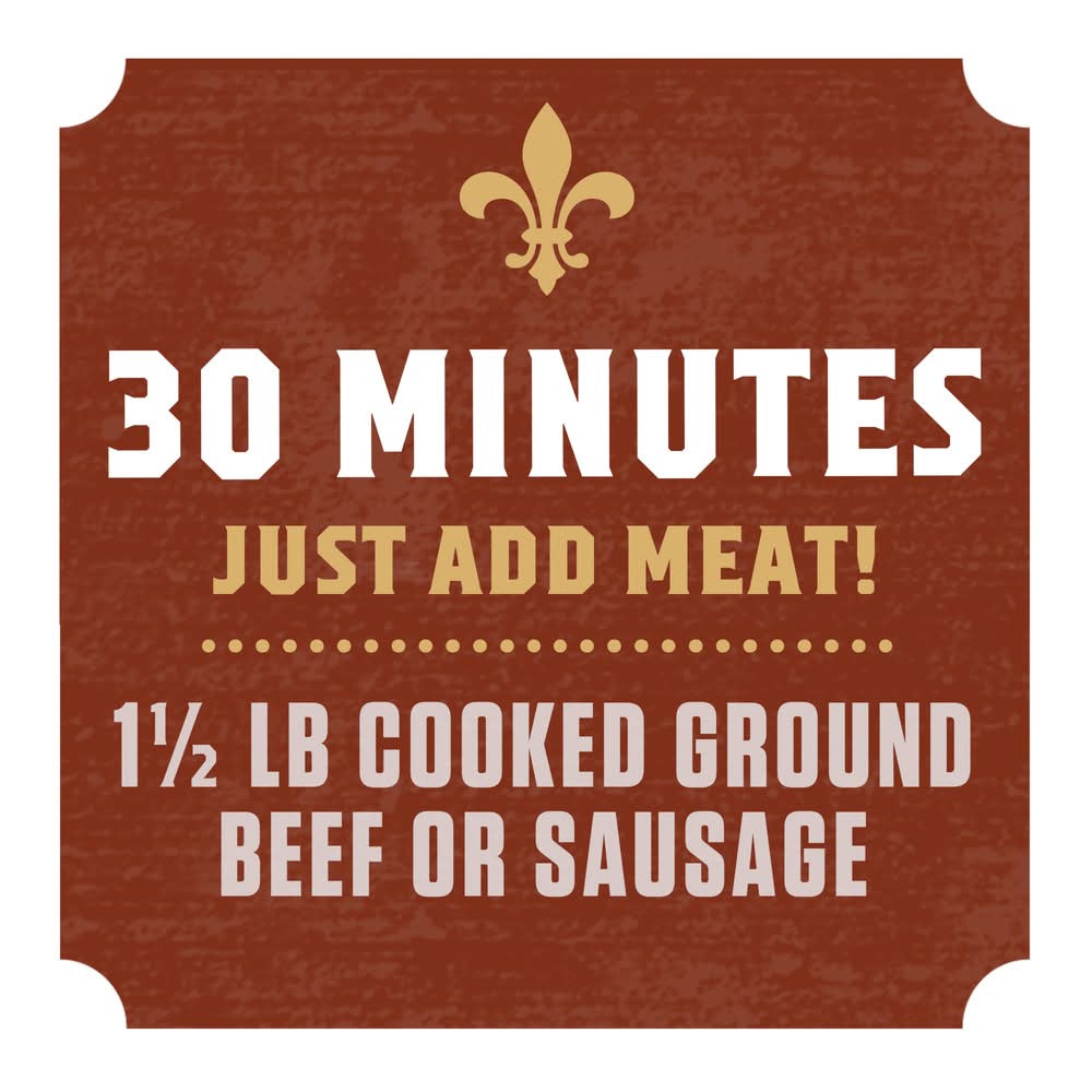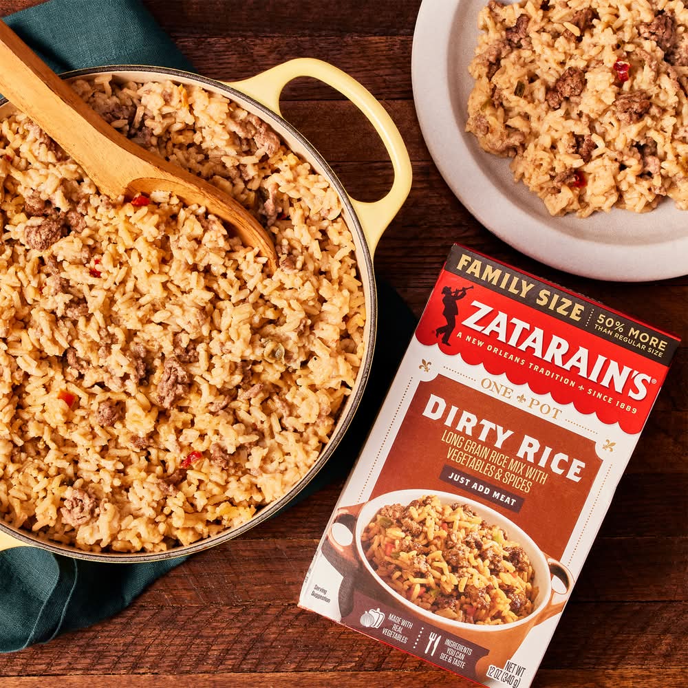 Make your next meal big and easy with Zatarain's Family Size Dirty Rice Mix, made with long grain rice and real vegetables and spices. Just add 1 1/2 lbs ground meat of your choice for a one-pot 30-minute meal with New Orleans inspired flavor in every bite.