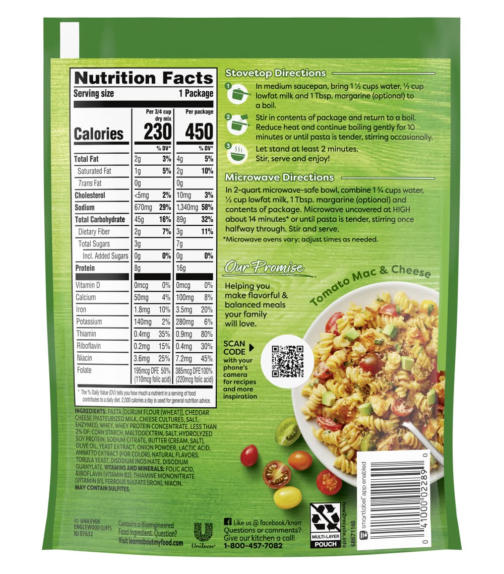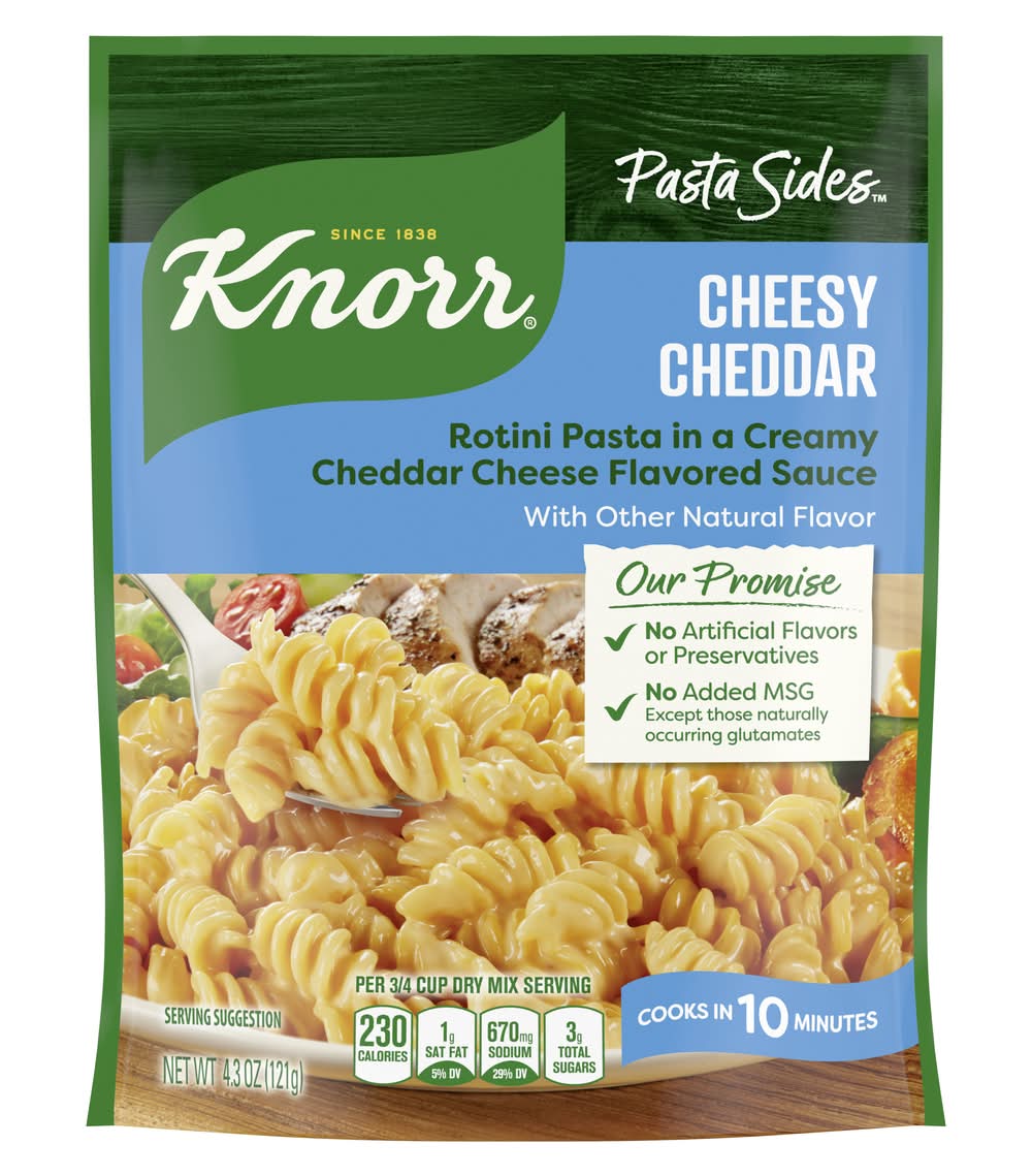 Knorr Pasta Sides Cheesy Cheddar Rotini, 4.3 oz • Unilever, Englewood Cliffs,NJ,07632 • Packaging: Reusable