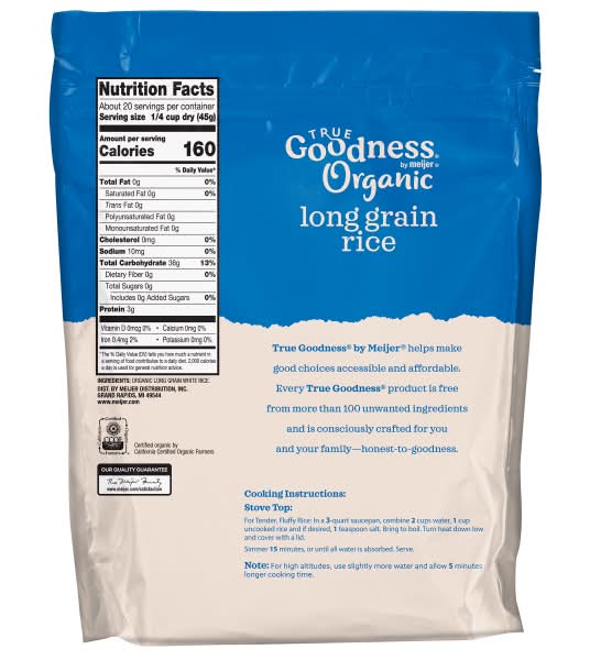 Experience an endless amount of recipe opportunities with True Goodness Organic Long Grain White Rice. Fantastic for soups and sides, this versatile rice will quickly become a staple in your kitchen. Enjoy the difference wholesome ingredients make and the creativity it allows in the kitchen with this organic white rice.