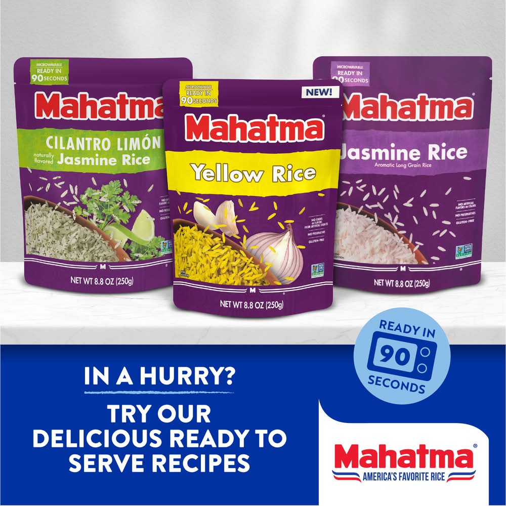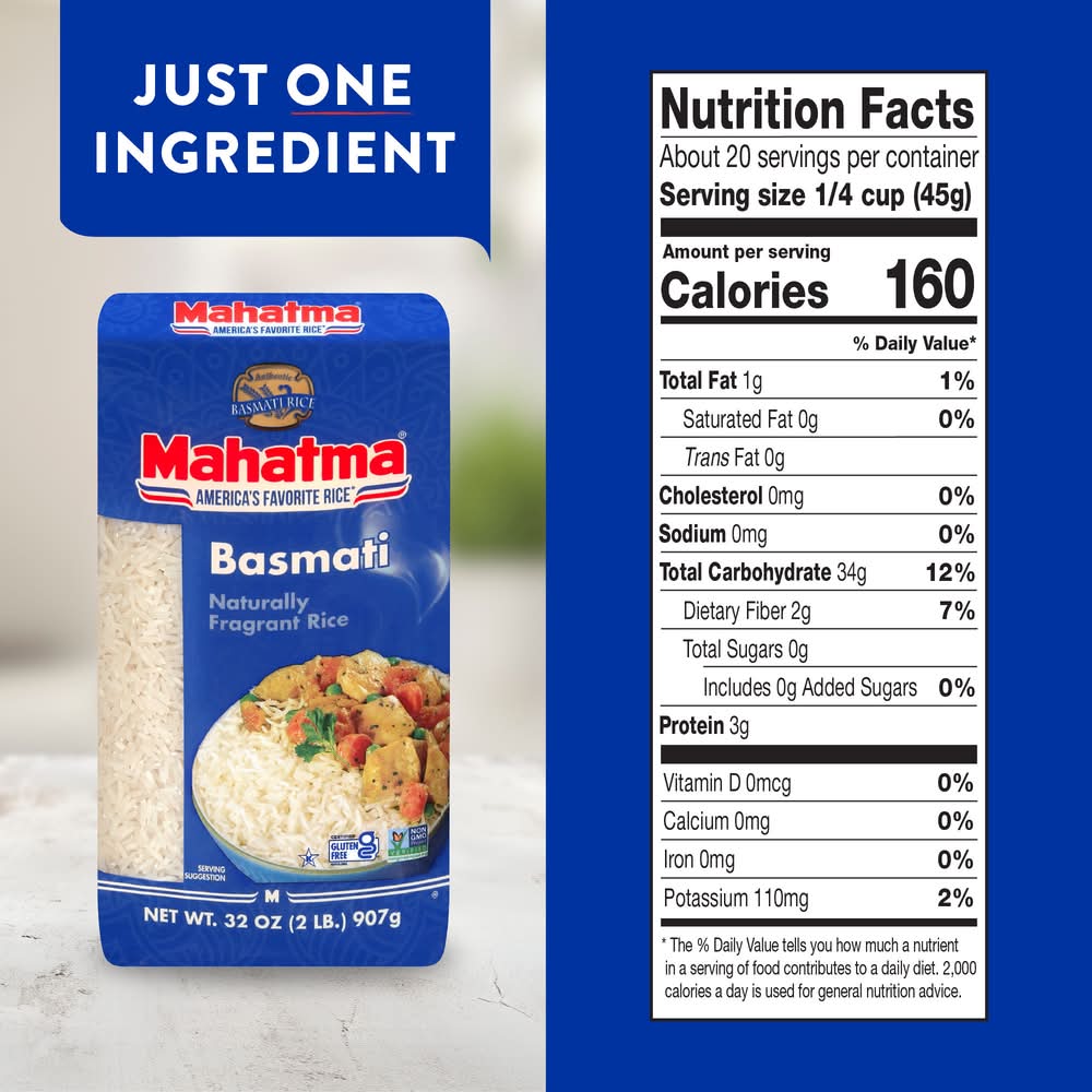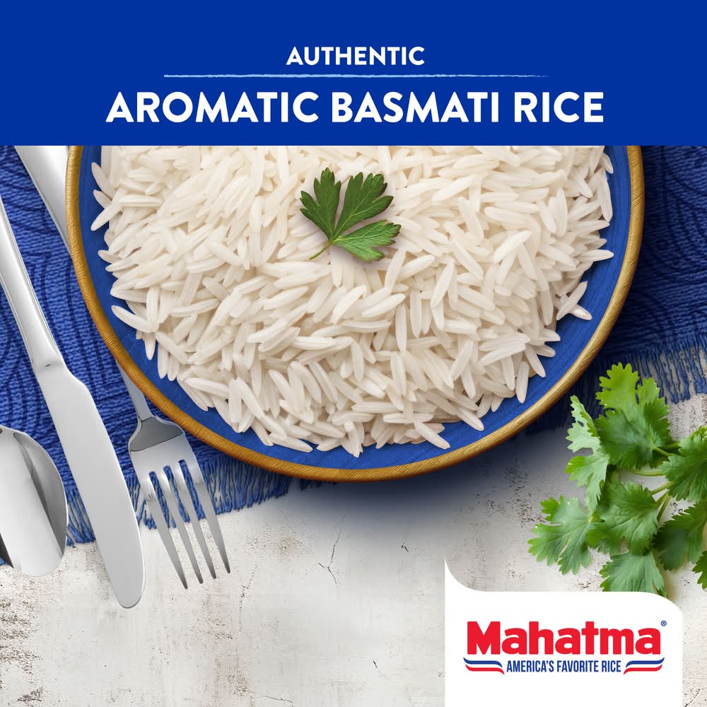 Use premium quality Mahatma® Basmati Rice for all of your favorite meals, especially Asian and Middle Eastern dishes. These extra long and slender grains are the perfect choice as they stay firm after cooking and never get sticky! Enjoy the memorable aromatic texture and flavor with all of your favorite ingredients in dishes like a rice salad, rice pilaf, chicken Biryani, or even in a sweet rice pudding! Available in a 2 lb bag. Riviana Foods, Houston,TX,77019,U.S.A.