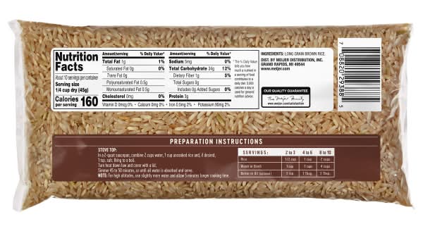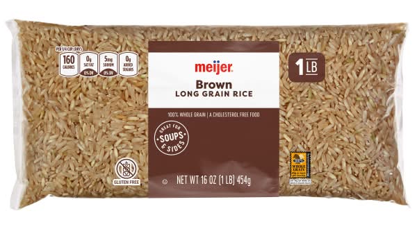 Experience an endless amount of recipe opportunities in just 45 minutes with Meijer Long Grain Brown Rice. Selected from the finest harvest, this versatile 100% whole grain was nurtured to bring out its rich flavor. With a satisfying nutty aroma, this pound of brown rice is perfect for rich curry, flavorful stir fry, or authentic rice and beans.