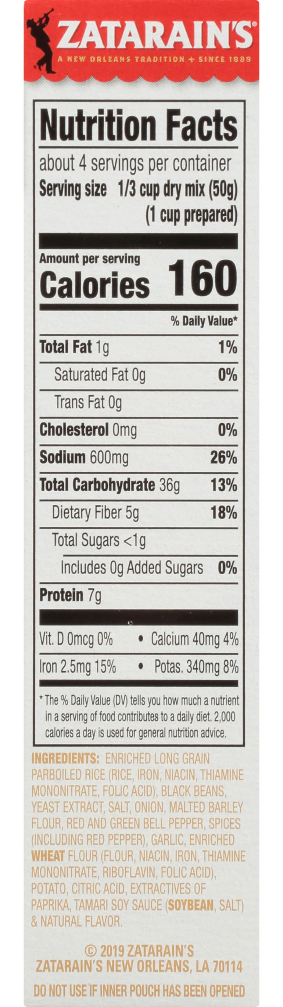 This dish is perfect as a side or jazzed up as a meal -- just add a half pound of cooked sausage, chicken or vegetables. Enjoy the authentic flavor and soul of New Orleans in less than 30 minutes. Zatarain's, New Orleans,LA, 70114
