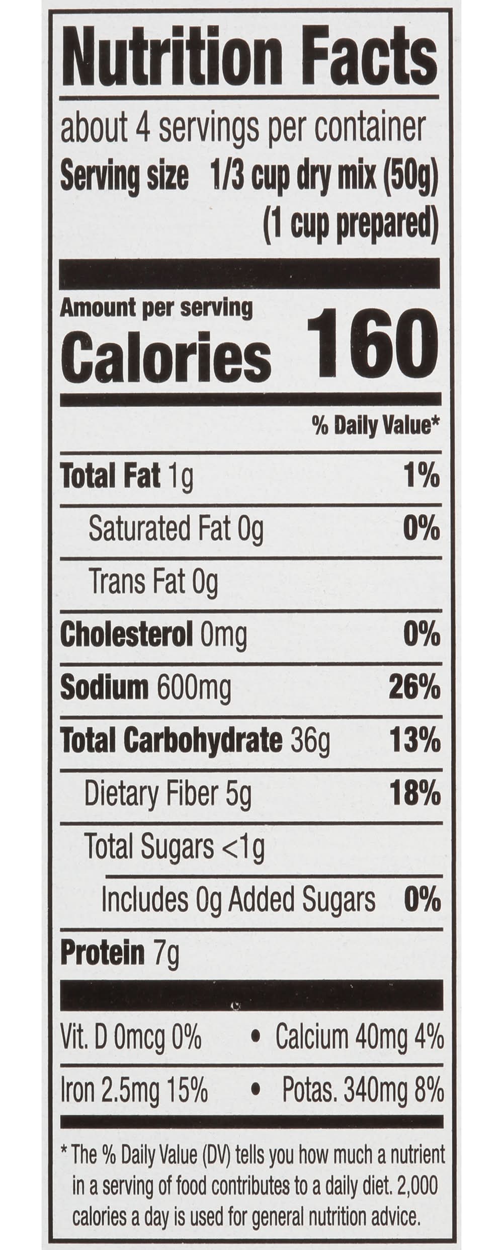 Ingredients: Enriched Long Grain Parboiled Rice (Rice, Iron, Niacin, Thiamine Mononitrate, Folic Acid), Black Beans, Yeast Extract, Salt, Onion, Malted Barley Flour, Red and Green Bell Pepper, Spices (Including Red Pepper), Garlic, Enriched Wheat Flour (Flour, Niacin, Iron, Thiamine Mononitrate, Riboflavin, Folic Acid), Potato, Citric Acid, Extractives of Paprika, Tamari Soy Sauce (Soybean, Salt) Natural Flavor. Contains: Soybeans, Wheat