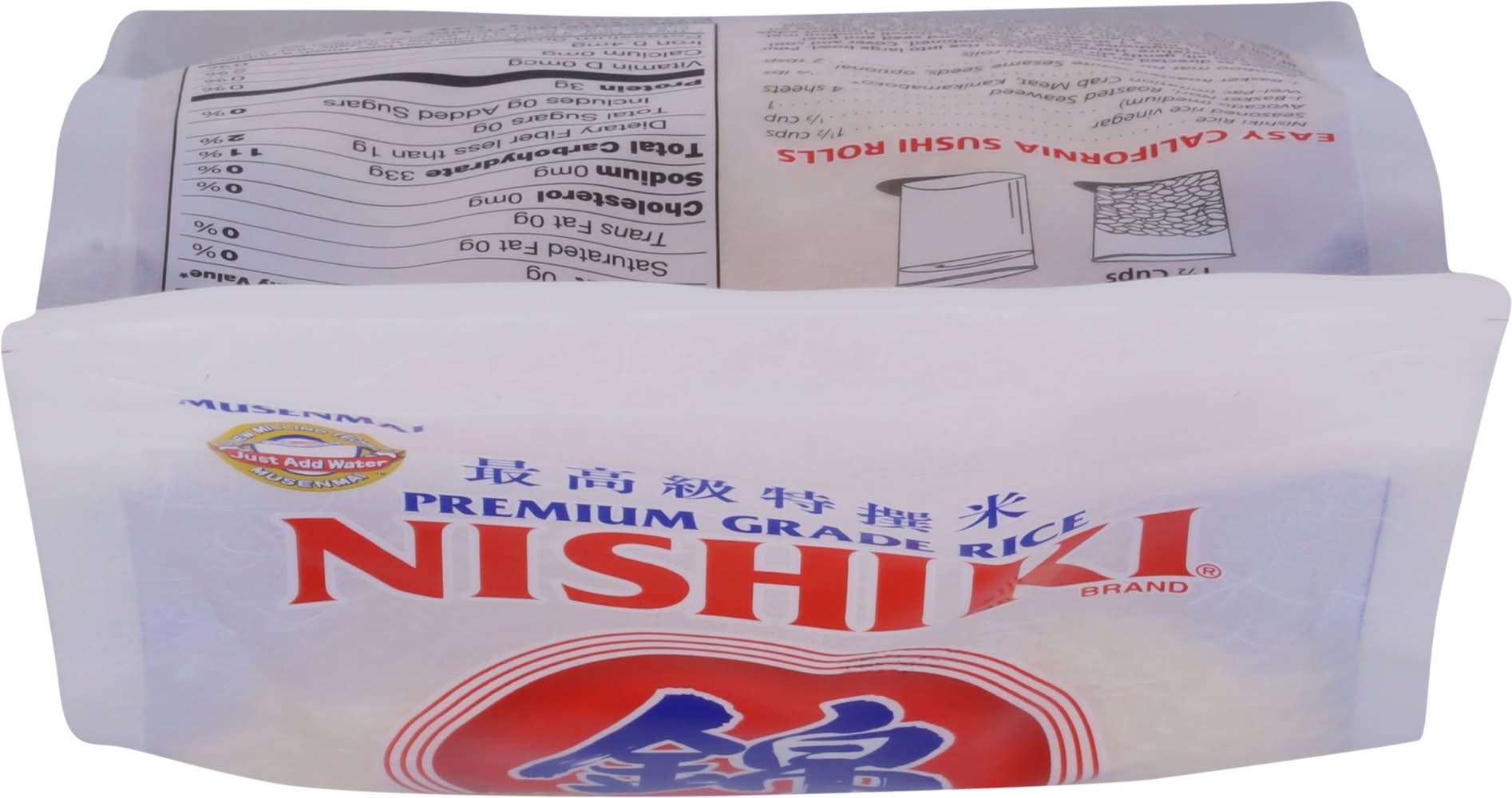Directions for use: Cooking Directions: Combine 1 1/2 cups Nishiki Rice and 2 cups water in a medium sauce-pan. Let rice soak for 15 minutes before cooking. When ready. bring to a soft boil, then reduce heat to low. Cover and simmer for 20 minutes, or until moisture is absorbed. Remove from heat and let stand covered for 10 minutes. Fluff and serve. Makes about 4 cups cooked rice. Note: If using electric rice cooker, combine 1 1/2 cups rice and 2 cups water in electric rice cooker pot. Continue as directed by rice cooker manufacture. Perfect for sushi rice. Store in a dry and cool place. Avoid direct sunlight. Cut on or above the dotted line. Storage recommendation: Store in a dry and cool place. Avoid direct sunlight.