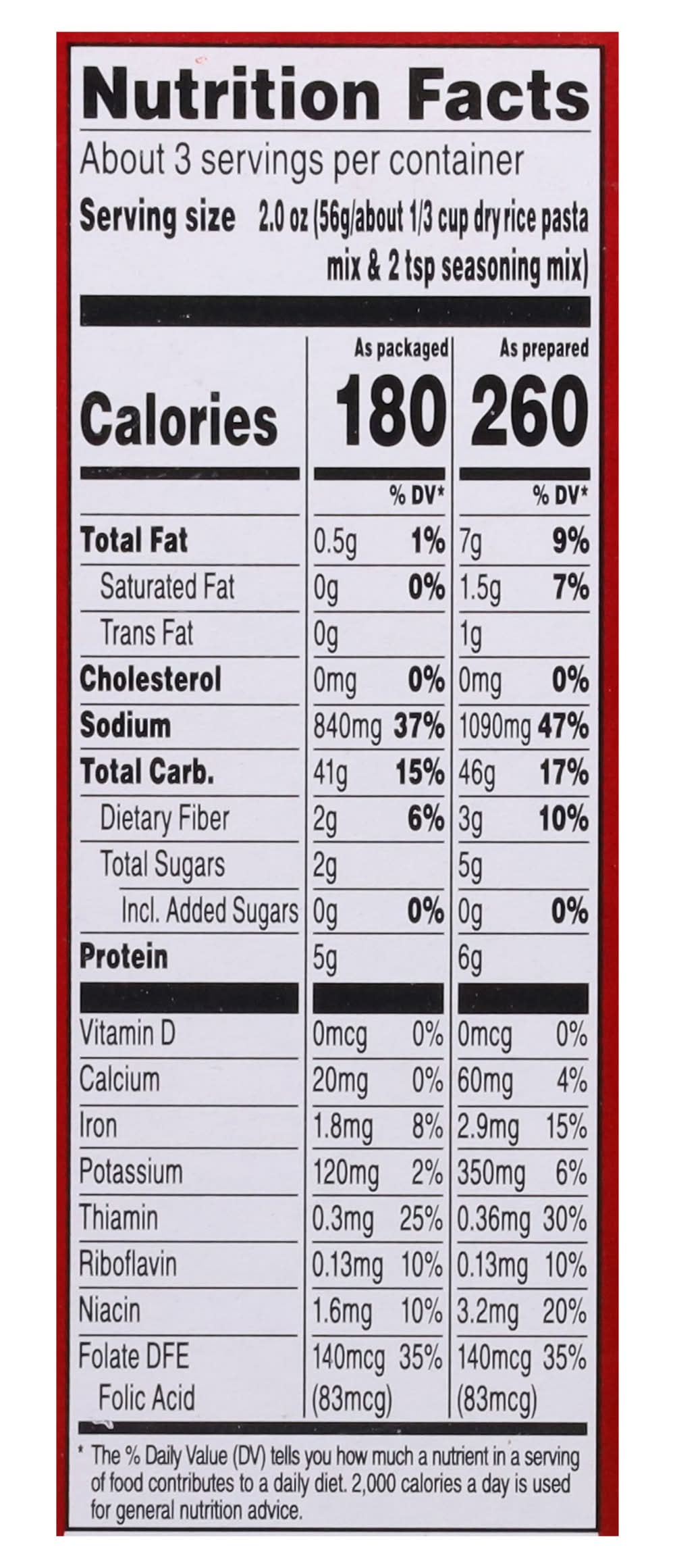 Ingredients: Rice, Wheat Flour, Onions, Salt, Potassium Salt, Green Bell Pepper, Hydrolyzed Soy Protein, Monosodium Glutamate, Natural Flavor, Dextrose, Paprika (Color), Spices, Dried Garlic, Iron (Iii) Phosphate, Niacinamide, Thiamine Mononitrate, Folic Acid, Riboflavin Contains: Wheat, Soy